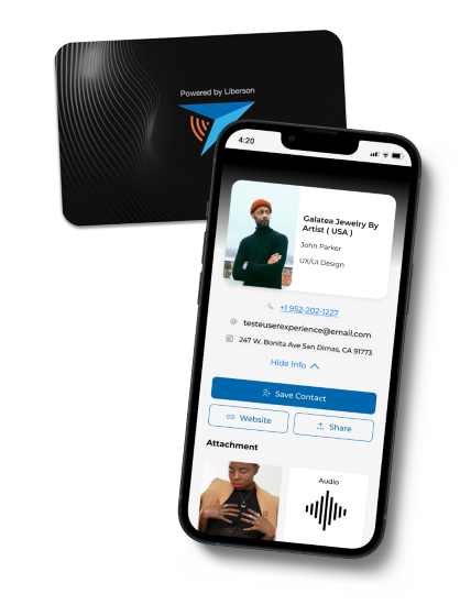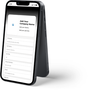 When you open your card for the first time you can add all your contact info such as: number, email, address, website, name, profile picture, company and your job title.